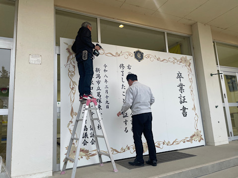 葛塚東小学校の卒業式には,「撮影スポット」が設置されます。