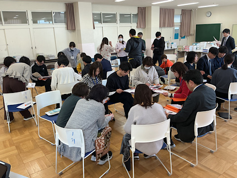 教科書の仕分作業やドリルや教材の選定、靴箱のシール貼り等、子どもたちを迎える準備を行っています。