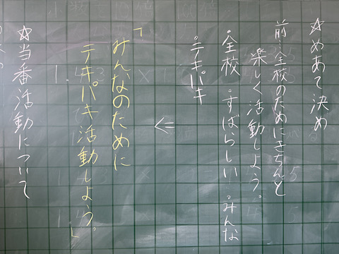 また、活動のめあてや当番活動の役割分担を決めました。学校をよりよくするために、自主的に活動できるようにしていきたいものです。