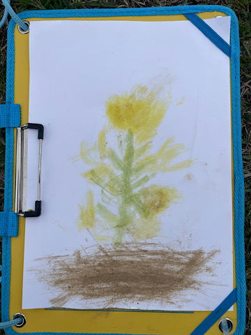レンジャーさんの許可を得て、菜の花畑からお気に入りの1本を頂戴し、絵も描きました。