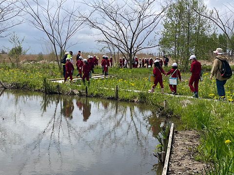 この日は3年生が福島潟に出かけました。ビュー福島潟の屋上から潟を眺めたり、自然学習園を散策したりしました。
