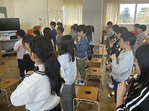 後半は、大小様々なリコーダーを紹介していただきました。手のひらサイズのものから1Mあるものまで、計6種類。それぞれのリコーダーで楽曲も演奏していただき、ノリノリの子どもたち。自然に拍手が沸き起こ利ました。