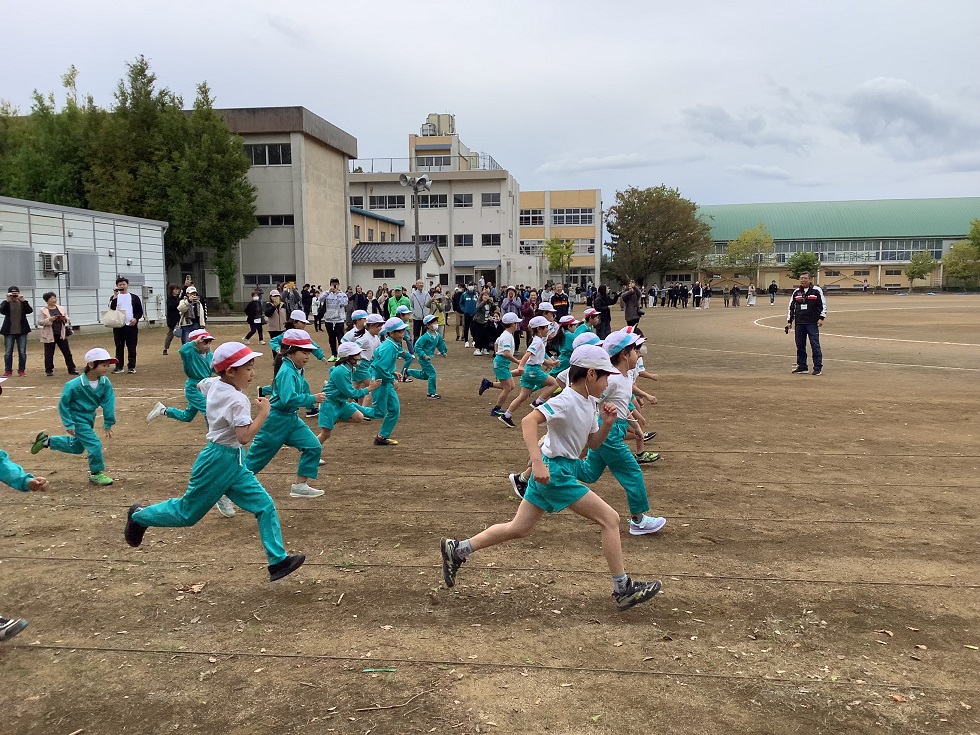 スタートの合図とともに、グラウンドを力強く走り出す子どもたち。