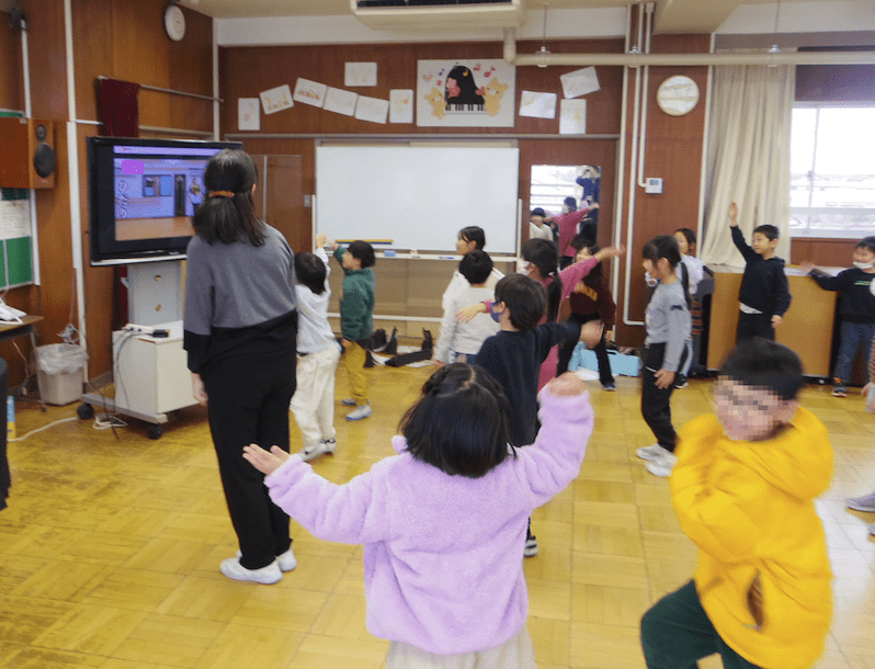 今日は朝から寒かったですね。降り続く雨が雪に変わるのではないかドキドキしていた子もいたことでしょう。そんな中、音楽室から楽しそうな声が聞こえてきたので覗いてみたら… 1年生がダンスを踊っていました …