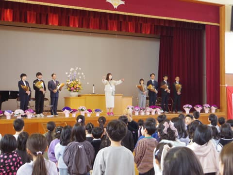 昨日、3月25日は離任式でした。7人のお世話になった先生や職員とお別れをしなければなりません。壇上に立つ離任者の話を真剣に聞く子どもたちの中には、涙を浮かべたり、下をうつむいたりする姿も見られました …