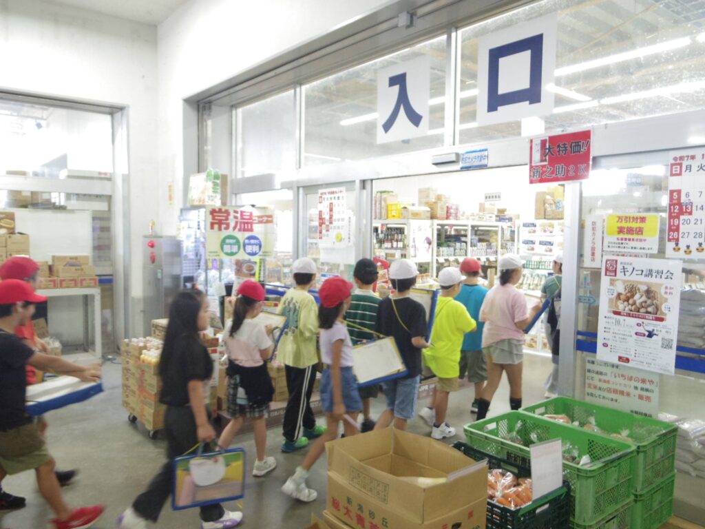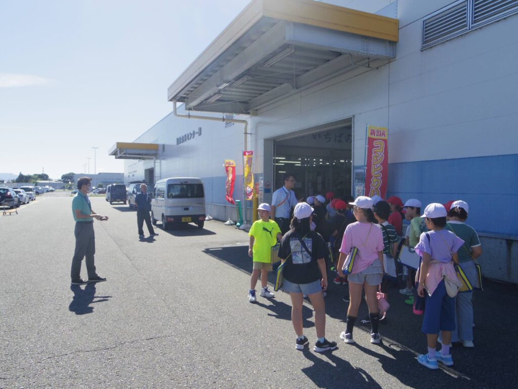 子どもたちから質問がたくさん出ました。「どうやって値段を決めているのか?」「嬉しかったことは?」「大変なことは?」など、子どもらしい質問にも店長さんは丁寧に応えてくれました。ニーズや状況をとらえて仕入れをした物が予想通りに売れたとき、お客さんから「安い」や「いいのが見つかった」など嬉しい声をかけてもらったときなど、仕事のやり甲斐についてのお話を聞きながら、物を売るお仕事に携わる人の思いや願い、流通の仕組みについて理解を深めた様子でした。明日は3年1組が出かけて行くそうです。