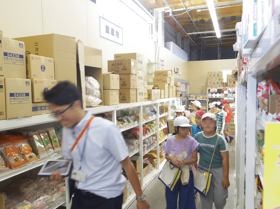 最近の物価高で一般の方の利用も増えているようです。多くのお客様がお買い物をされていました。生鮮食品はもちろん、加工食品や生活品など、店内にはさまざまな商品が並んでいました。お店の入り口には地場産の野菜や果物が並んでいます。すぐに売りたい旬の物と、一定の保存のきく物とで、陳列の場所や仕方が違うことを店長さんに教えてもらいました。