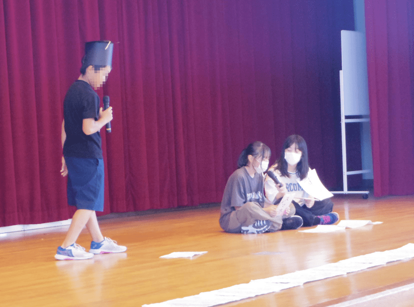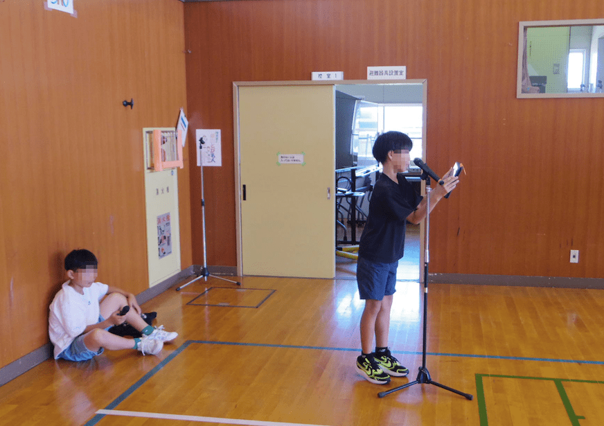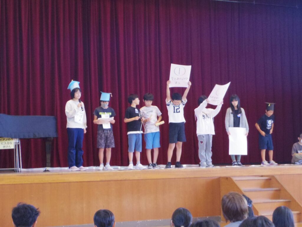 昨日の話題になります。お昼休み後に体育館で若竹集会をしました。今回は健康委員会の発表です。