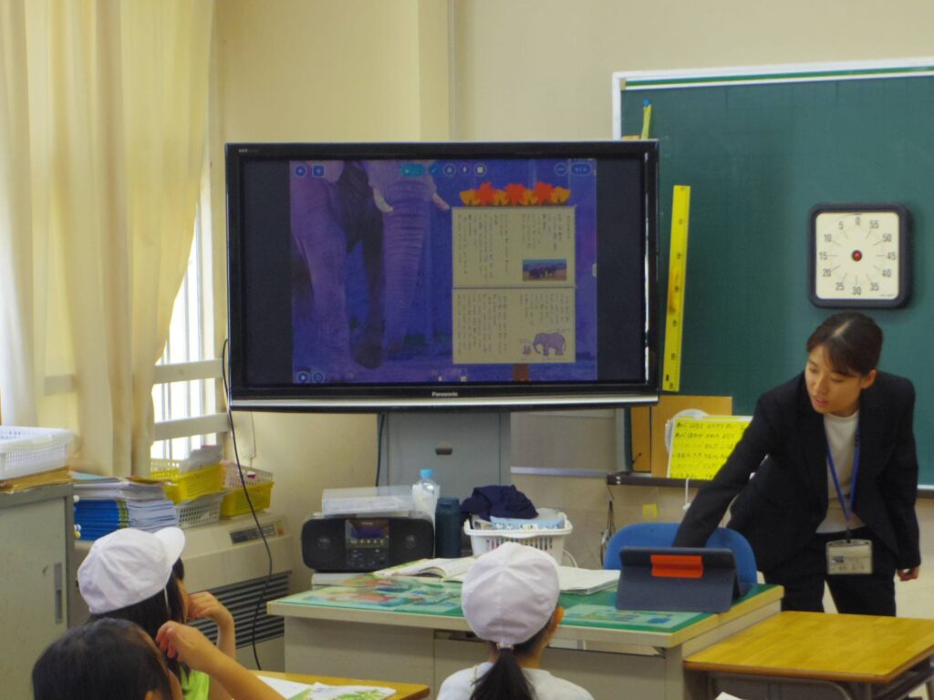 今日は新潟市教育委員会の先生が大勢やってきて授業を見てもらいました。3つのクラスが5時間目まで残ってがんばって授業に取り組みました。どんな授業だったか簡単に紹介します。まずは1年生のクラスです。
