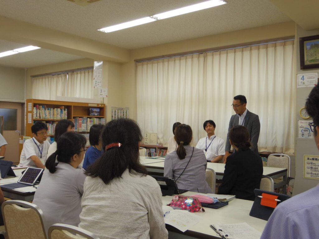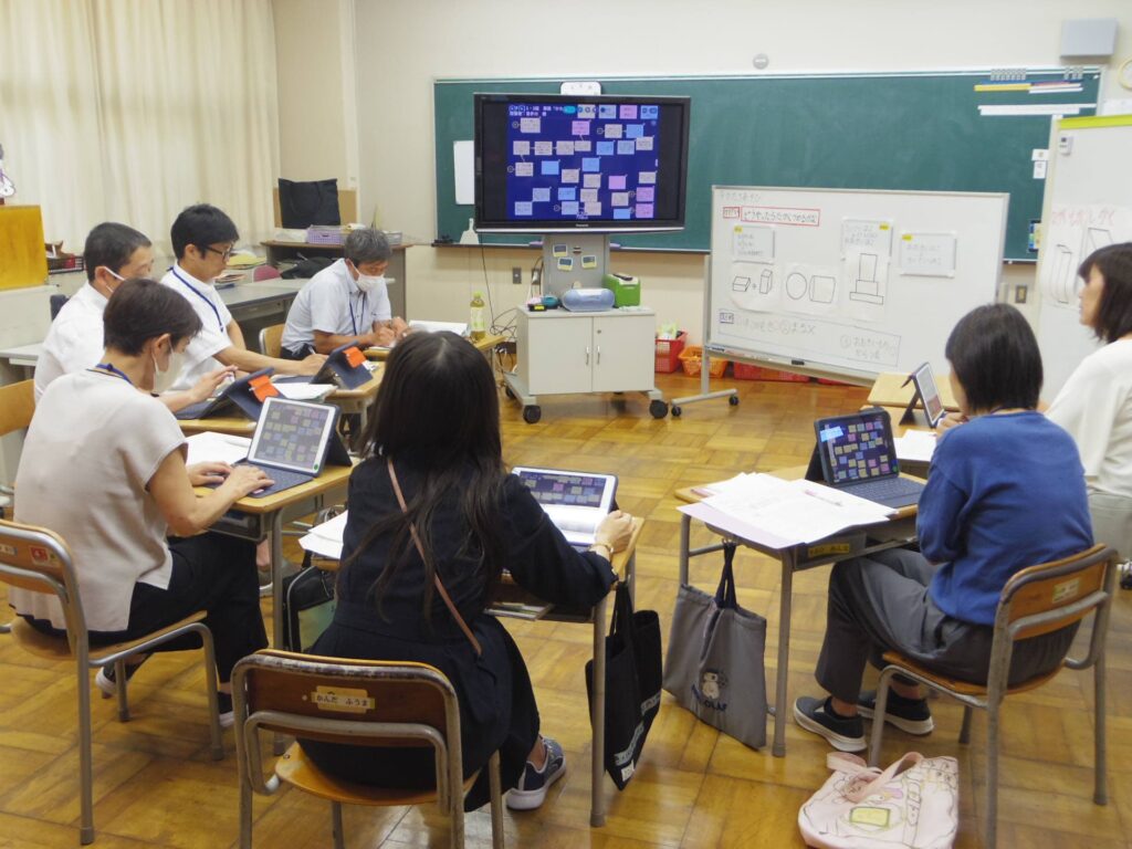 授業後は、先生たちで検討会をしました。自分が見ていた子どもがどんな力を発揮していたか、授業をした先生のどんな工夫がそれを引き出したのかなどについて互いに意見交換しました。