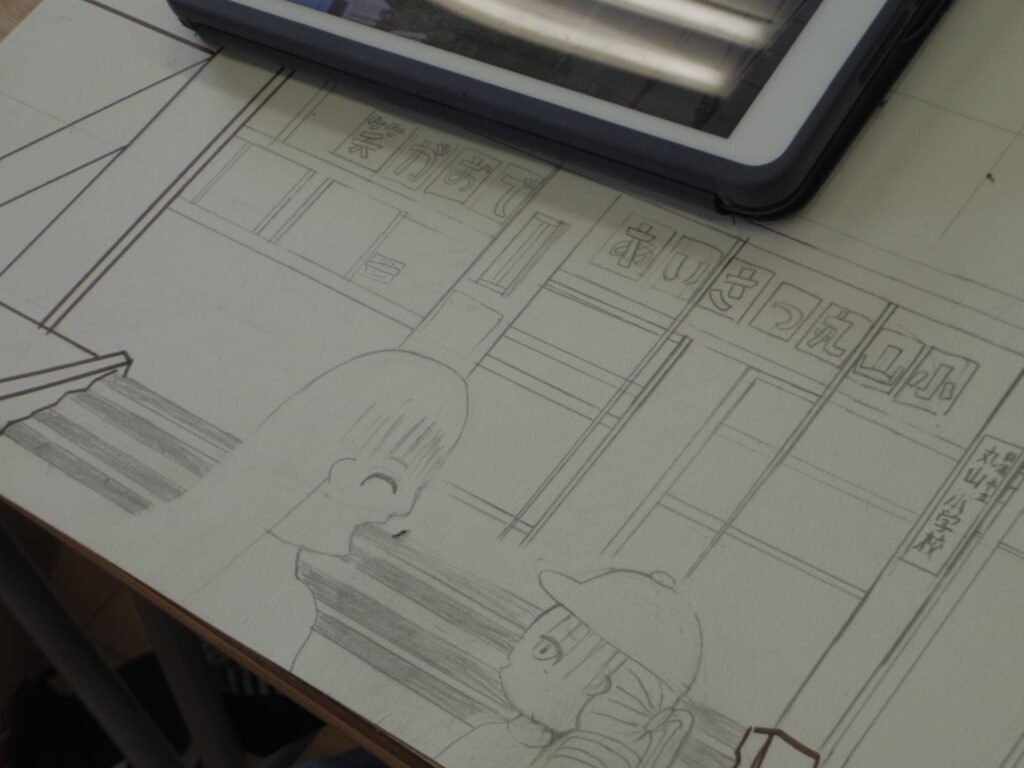 先生もモデルになってくれています。どんな思い出の絵ができるのか楽しみですね。