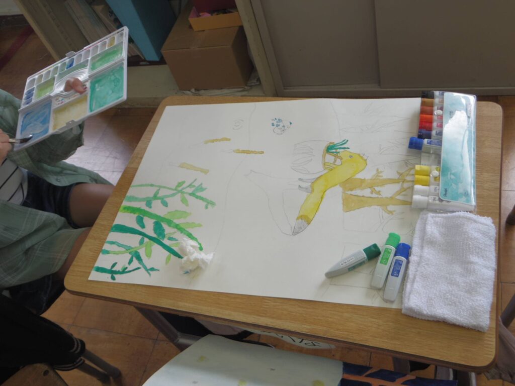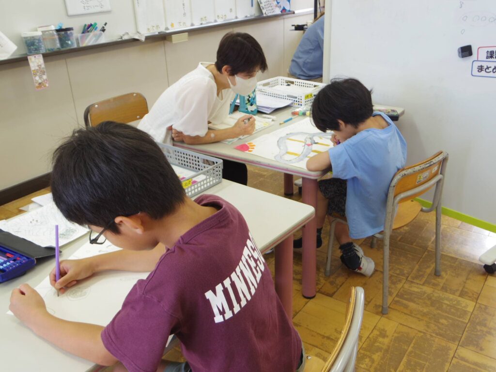 このクラスでも図工をしていました。先生からすぐそばでアドバイスを受けたり、「いいね」と勇気づけの言葉をもらったりしながら、安心して自分らしさをキャンバスに表現していました。