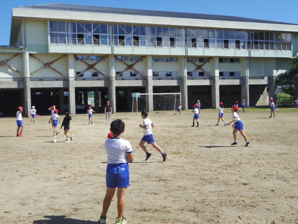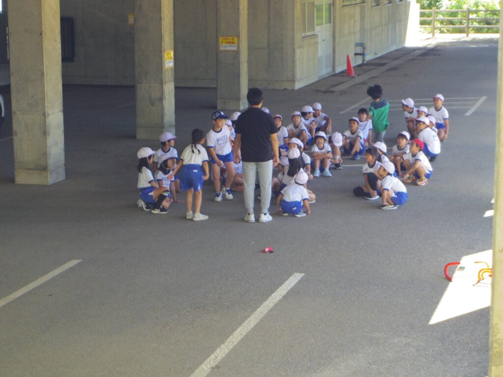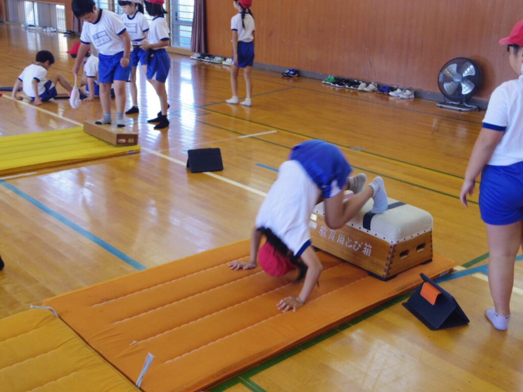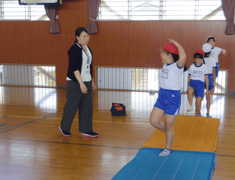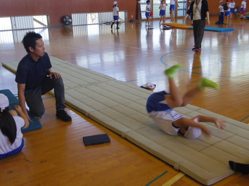 そして、体育館では2年生の体育の授業のはずですが。おやっ?5年生の先生が授業をしていました。実はこの先生は体育が専門で、2年生の先生の代わりに出前授業をしてくれていたのでした。