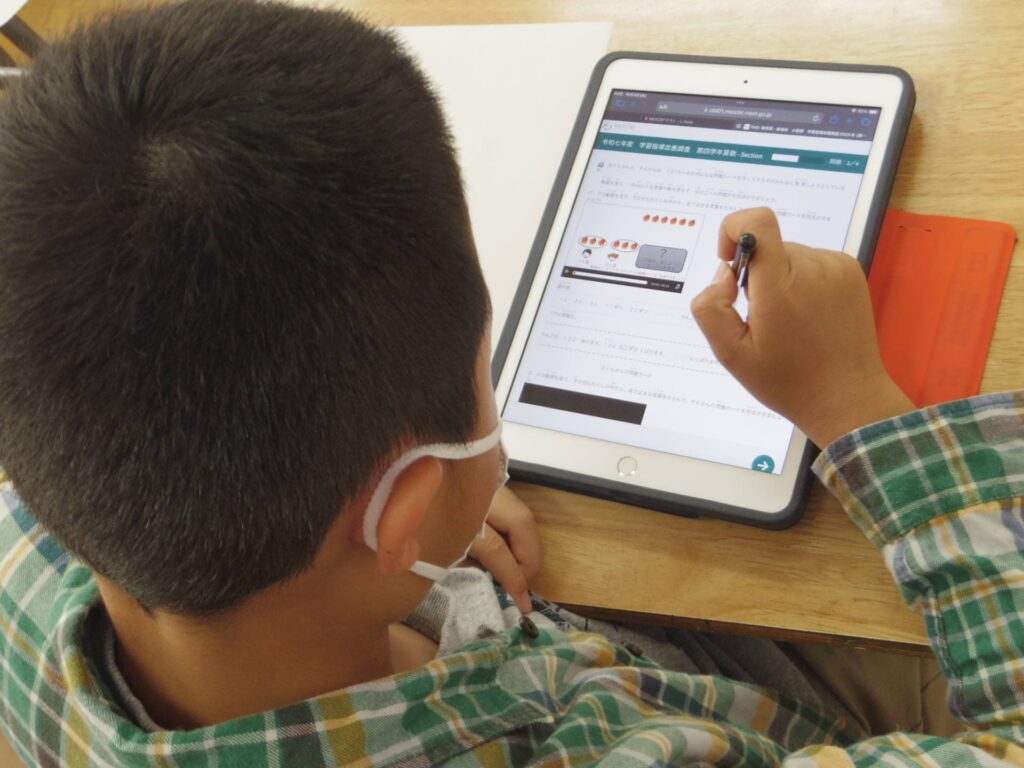 4年生では新潟県学習指導改善調査のためのテストをしていました。今年度からIBT(Internet Based Testing)方式にいよいよ変わりました。従来のペーパー方式にはあった長文を書く問題がなくなったので、子どもたちにとっては取り組みやすくなりました。その代わり資料を読んだり活用したりする情報活用能力がより試されることになりました。