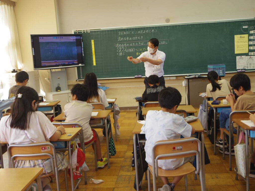 最後に一昨日ブログで取り上げた5年生の理科の先生の授業の続きです。川の流れを観察して気づいたことを交流していました。「転がる」「固まる」といった教科書の内容を超える子どもらしい気づきや言葉を丁寧に拾いながら考察をしていました。子どもから出た言葉を大切に紡ぐことが、子どもの実感を伴った理解につながり、すぐに剥がれない生きた知識となるのです。さすがです。