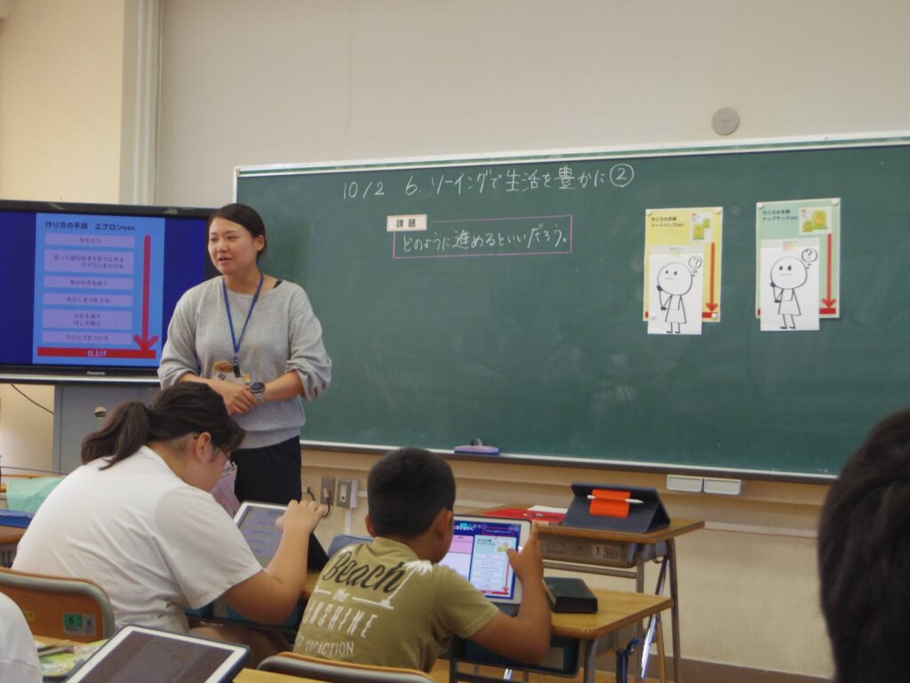 6年2組では家庭科の研究授業がありました。丸山小では教師全員が個人研究テーマを決めて授業改善に取り組んでいます。