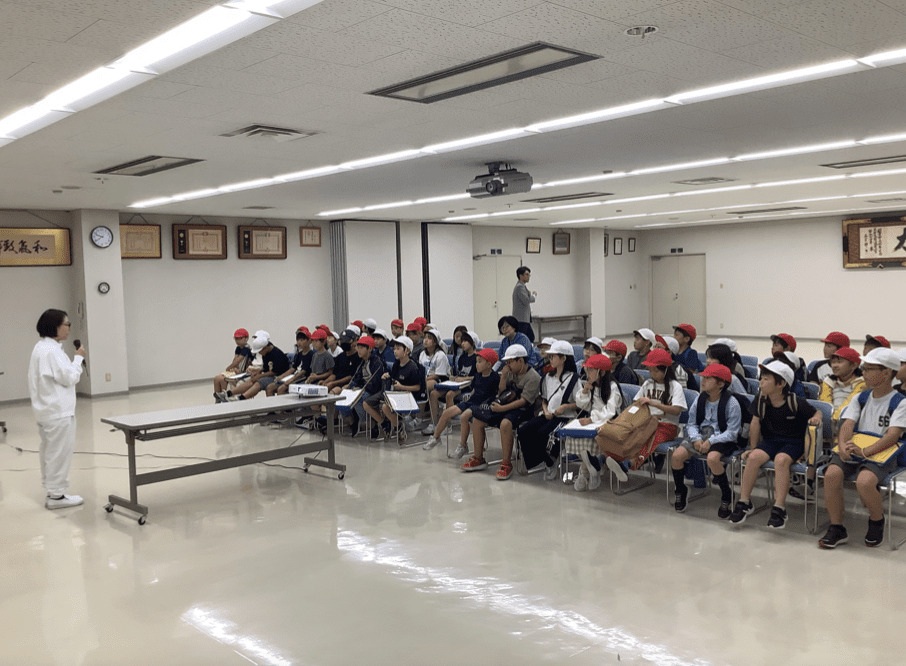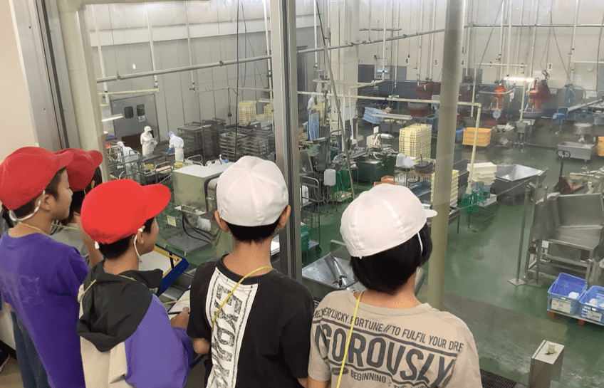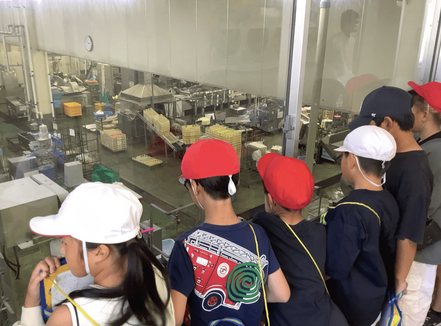 明日で前期が終わります。いろんなテストも終わったし、今日はバスに乗って外に行くかー!ということで、3年生が社会科の校外学習でかまぼこ工場に見学に行きました。到着してまずは工場の方からのお話を聞いたり、動画を見たりしてかまぼこの歴史や、かまぼこの種類、作り方などについて勉強しました。
