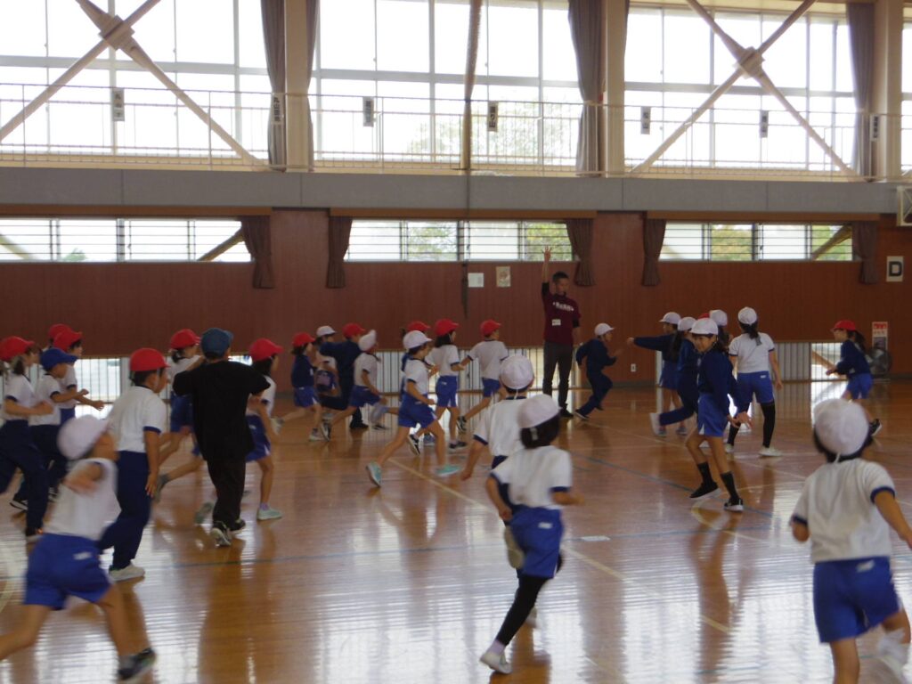 後期から2年生の体育は5年生の先生が指導してくれます。低学年に教科担任制を広げることで、子どもの学びの幅を広げるとともに、全職員で子どもたちを育てるという風土をつくります。