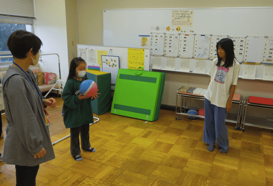 中に入ると楽しそうな声が聞こえます。相手の名前を言いながらバウンドキャッチボールをしている声でした。
