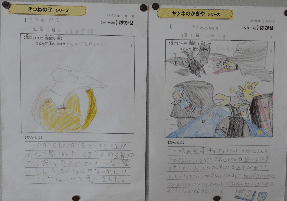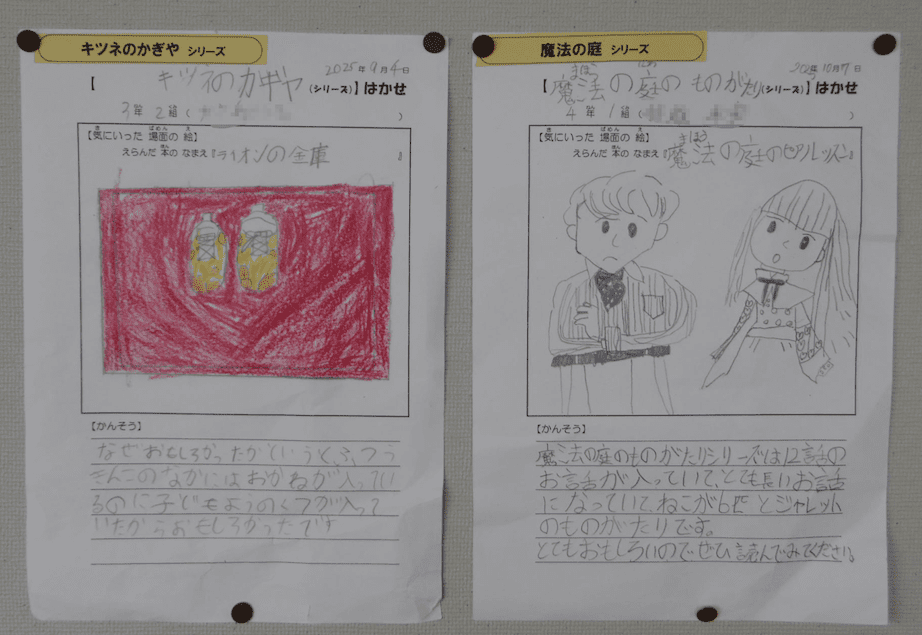 図書館の先生はいつも子どもたちを喜ばせる工夫をしてくれます。図書委員会の人のおすすめの本紹介やシリーズ読破に挑戦など、子どもたちを読書の世界にいざなってくれます。
