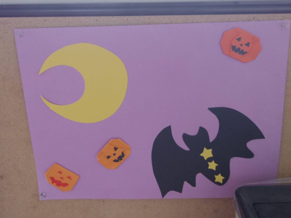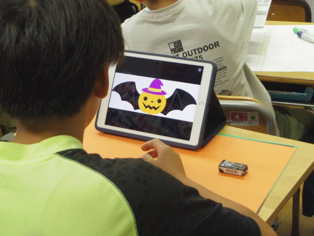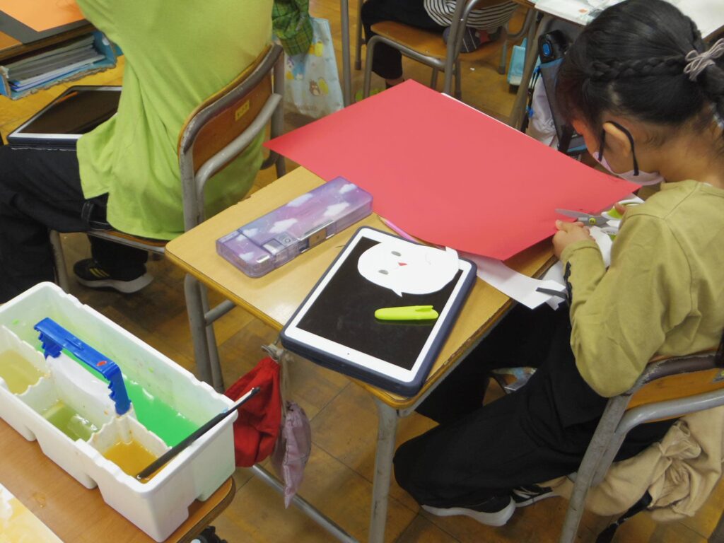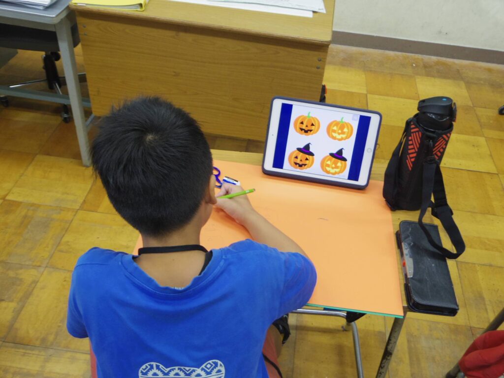 4年1組でも図工の時間に、自分の作品を完成させた人たちがハロウィンの飾りを作っていました。教室に飾るのかな?