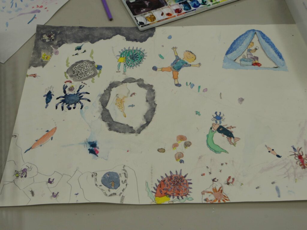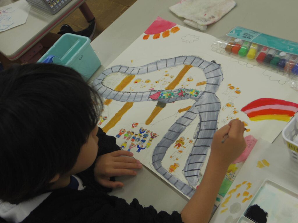 同じ教室の反対側では、集中して図工の作品づくりをしています。いよいよ作品展に向けて仕上げの段階かな?それにしても独自の世界観がよく表現されているなーと深く感心してしまいます。