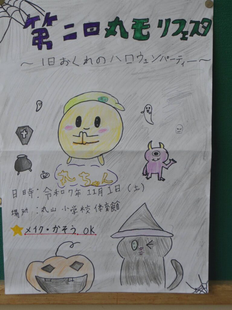 丸フェスの雰囲気を盛り上げられればと、自主的に作ったポスターを「校長先生どこかに飾ってください」と提供してくれるクラスもありました。すごく嬉しかったです。一番目立つ玄関あたりに貼ろうかなと思っています。