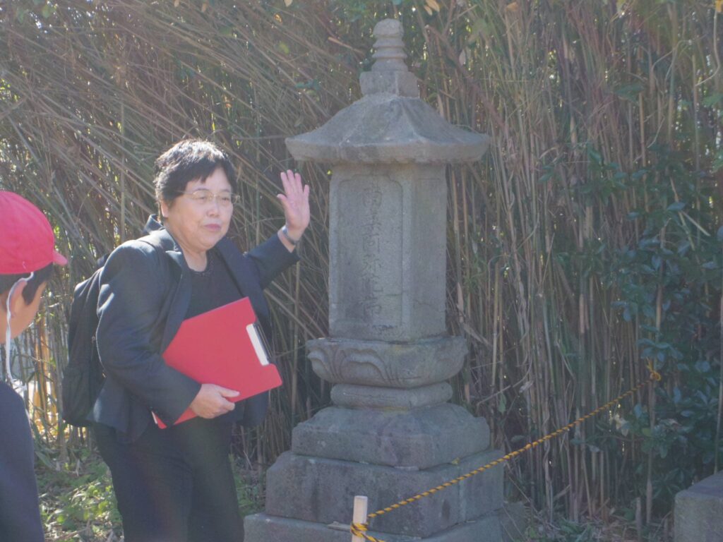 諸説あるそうですが、近畿地方の淡路島からこの丸山にやって来て開墾に尽力したという話も残っています。このお墓は50年前にやっと草藪から見つけられたそうです。