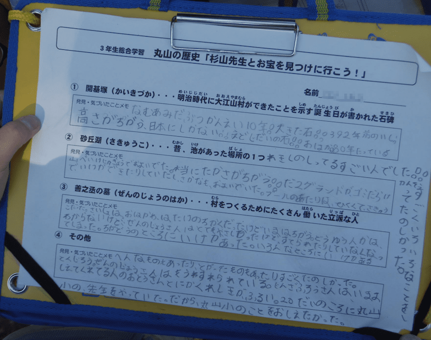 身近な場所にこんなにも価値のあるお宝があるとは、子どもはもちろんのこと、住んでいる大人も知る人は少ないのではないでしょうか。どうにかしてこのお宝に日の目が当たるといいなと思います。その役目はこの後の3年生の総合学習の活動に期待しましょう。