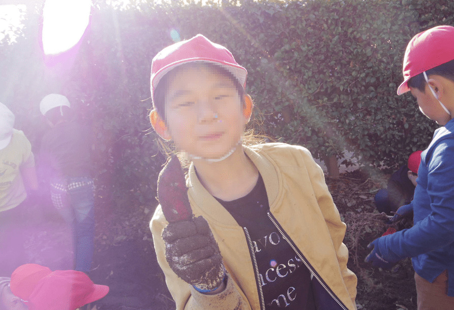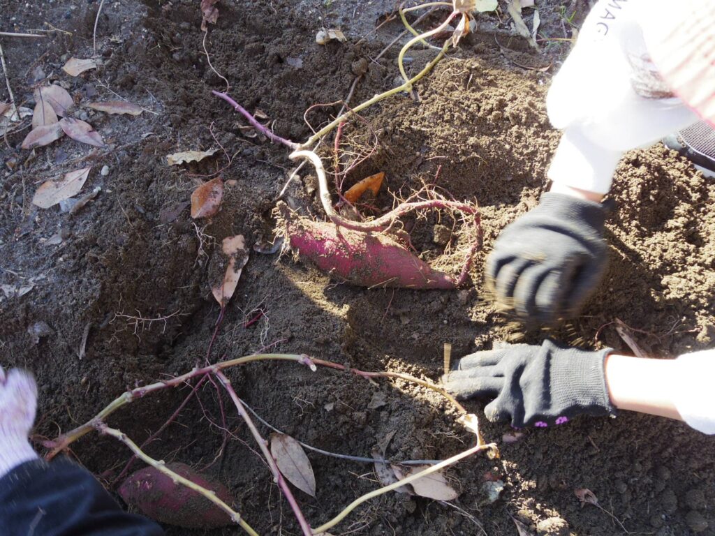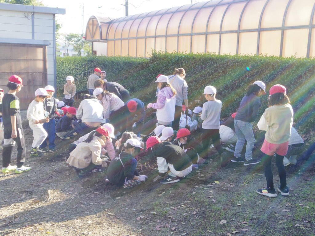 このお天気の日を逃すまいと、屋外で授業をしているクラスもチラホラ見られました。2年生は生活科で育てたサツマイモの収穫です。無我夢中でイモ堀りに取り組んでいました。