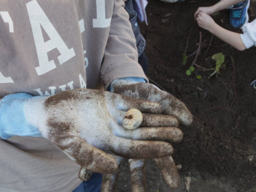 冬眠中の幼虫さんごめんなさい、すぐに土に返しますので。