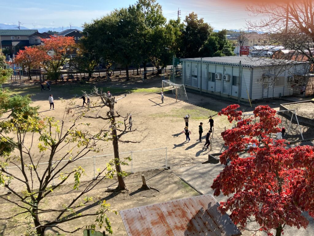 昨日、一昨日の大雨とはうって変わり、今日は気持ちのよい秋晴れでした。お昼休みもたくさんの人がグラウンドに飛び出していました。