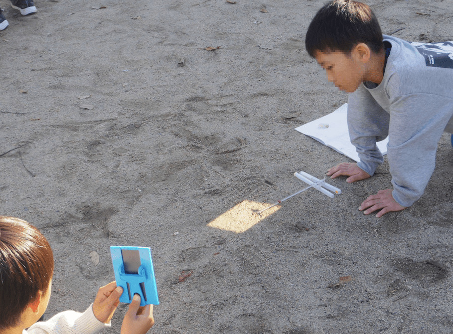 最後は全員で集中攻撃です。思ったよりも少ししか温度は上がりませんでしたが、鏡の枚数を増やすと温度計に変化があることをみんなで確かめることができました。