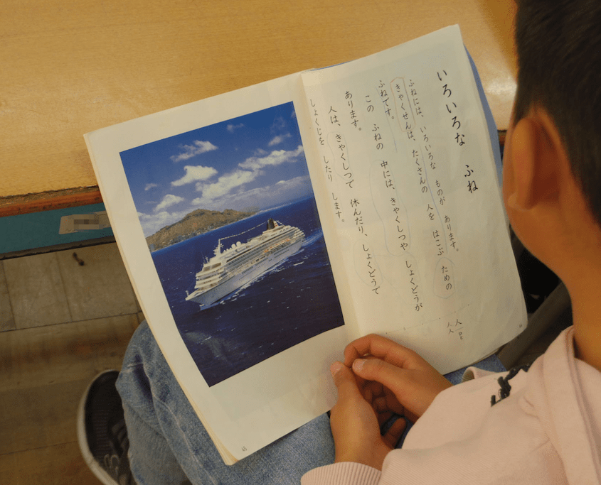 背中が伸びて教科書を立てていて、とてもよい姿勢ですね。