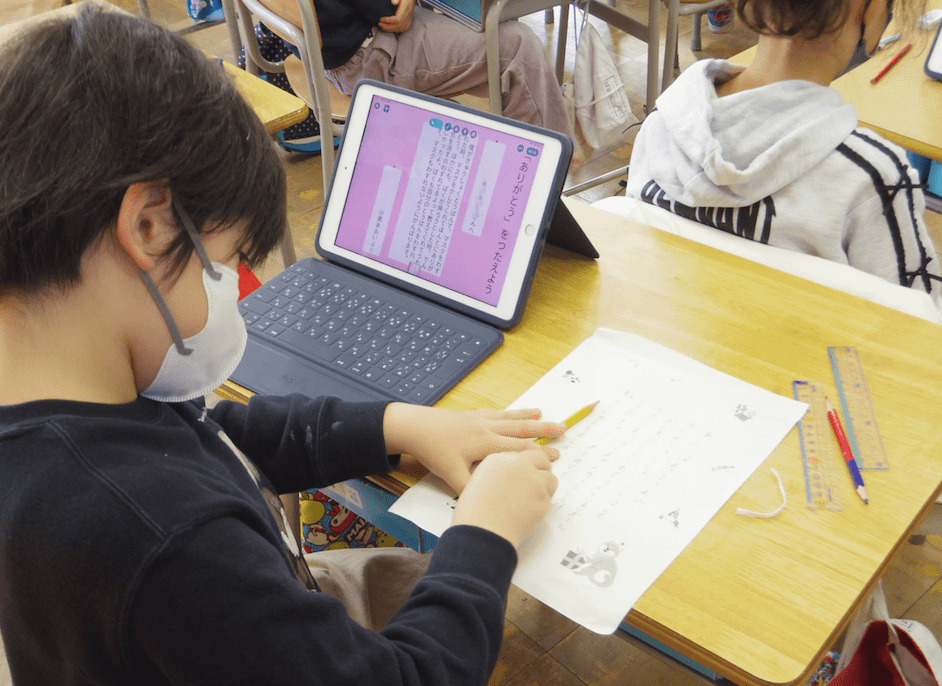 清書が終わった人は、デジタルドリルをしたり、九九の練習をしたりしていました。隙間の時間も自分の力を高めるために使います。