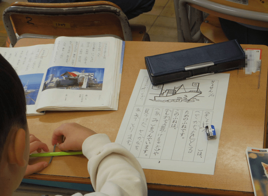 その特徴を今度はワークシートに整理します。だいぶ字も書けるようになりました。