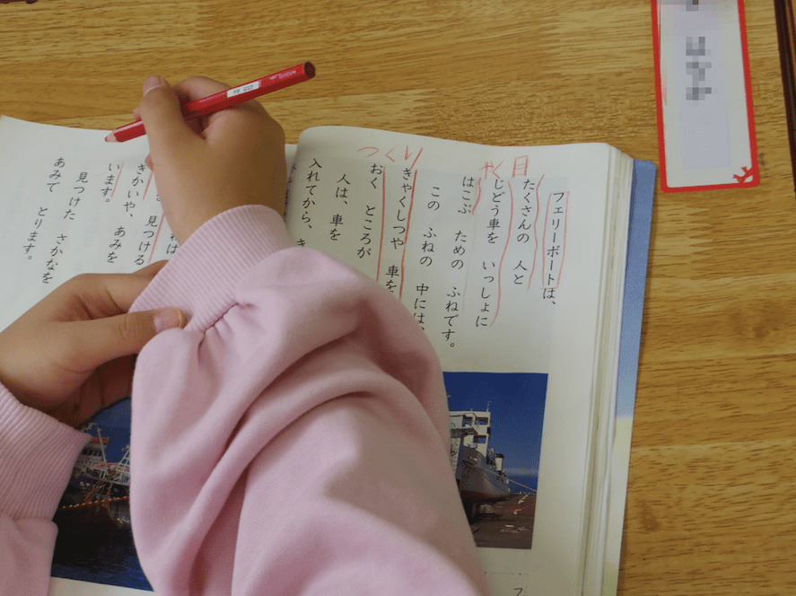 背中が伸びて教科書を立てていて、とてもよい姿勢ですね。