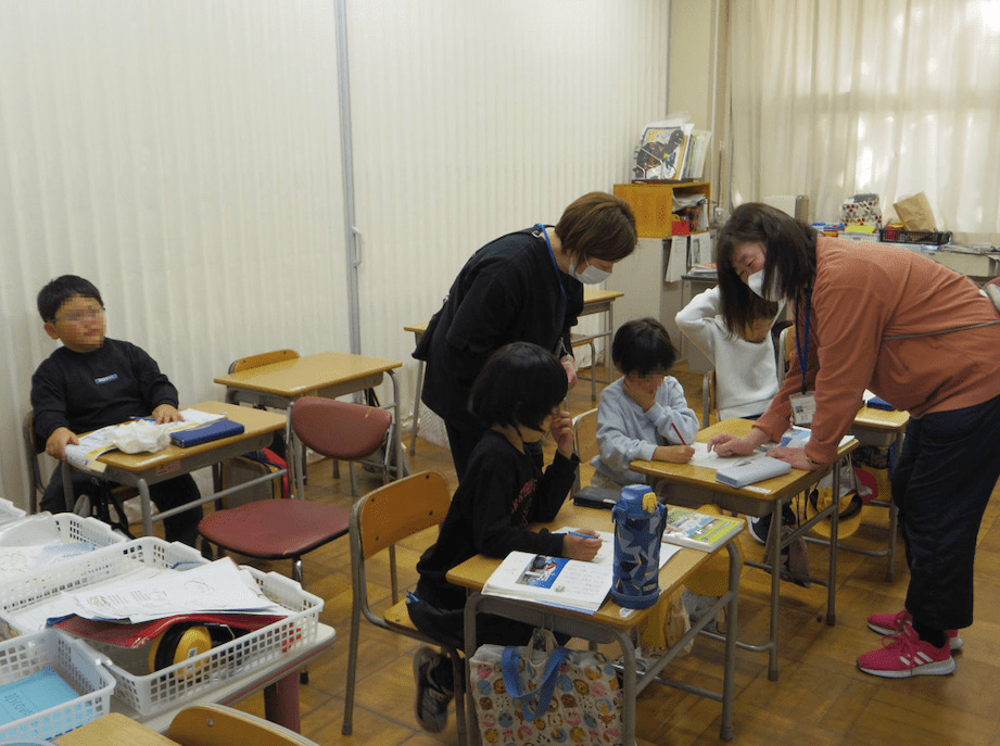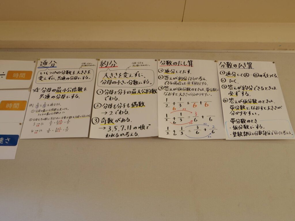 教室には習ったことを思い出せるように掲示も工夫されていました。個別指導といい、掲示物といい、みんなに「分かる」「できる」を保障するための大事な支援です。