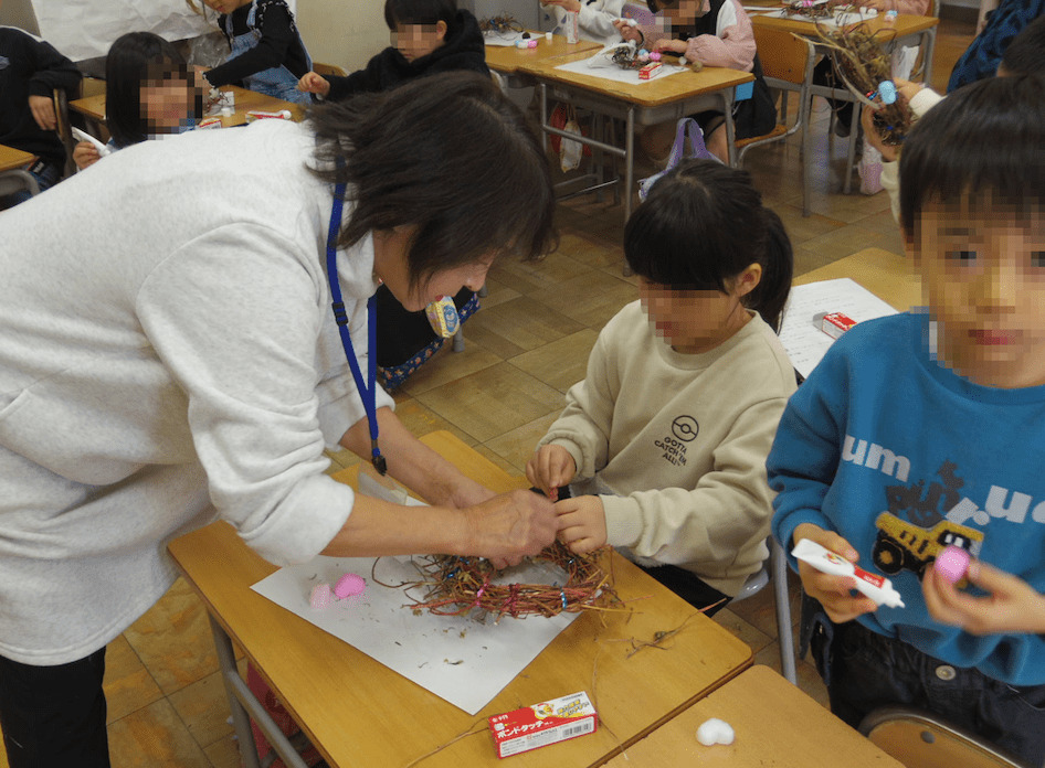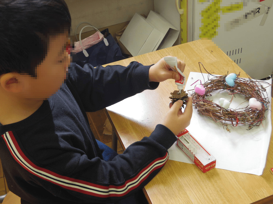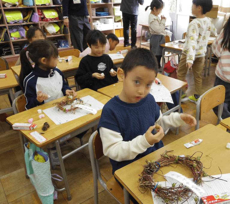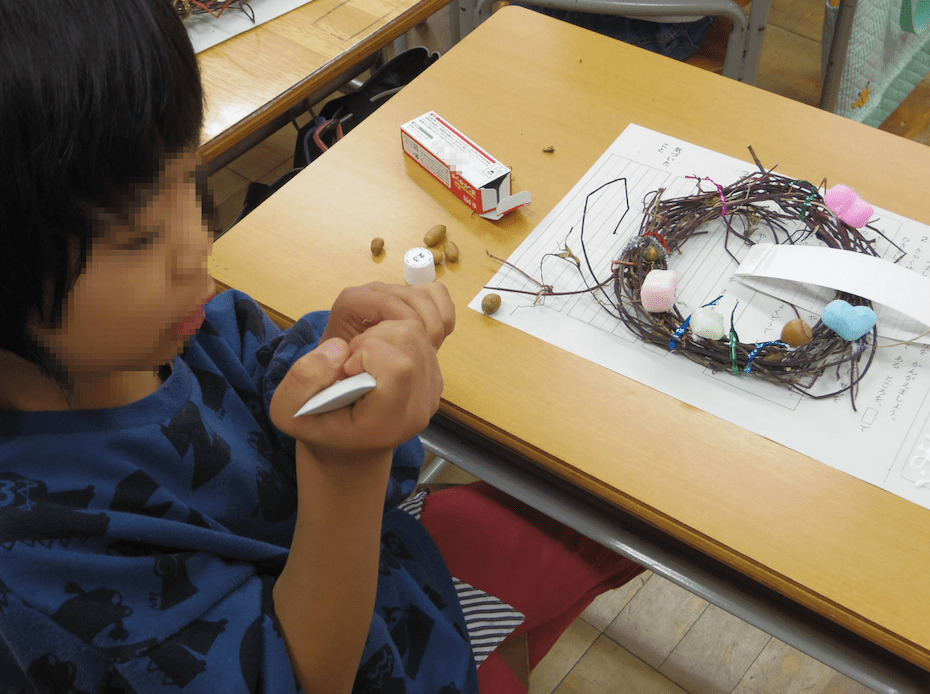 1組も2組も、みんなリースづくりに夢中に取り組んでいました。