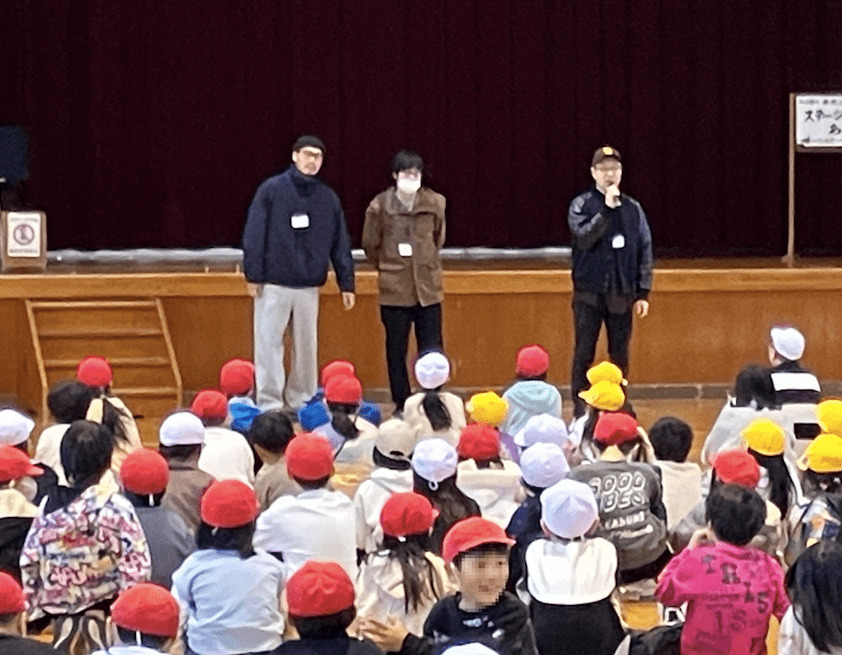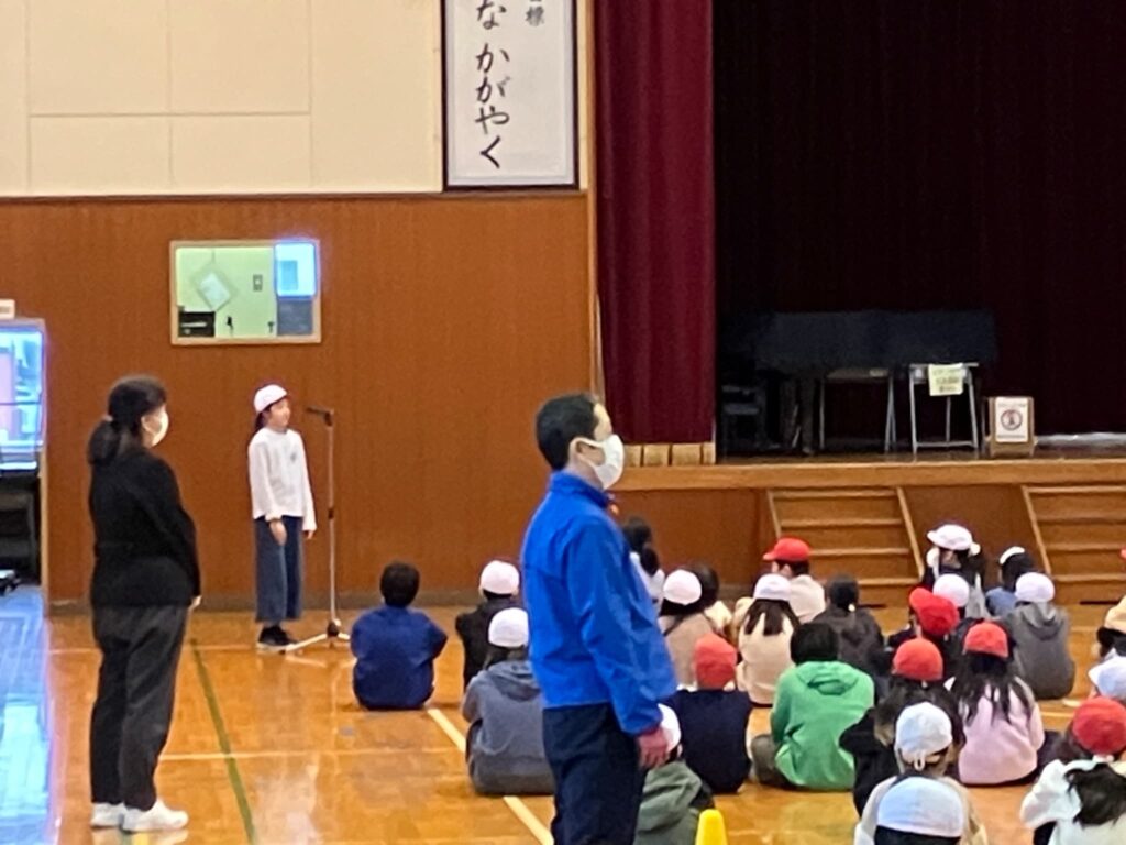 最後に体育館で閉会式をしました。6年生の代表の人が感想を述べた後、ボランティアに来てくださった3人のお父さんからも感想をいただきました。チームワークの良さや高学年のリーダーシップの良さを褒めていただきました。
