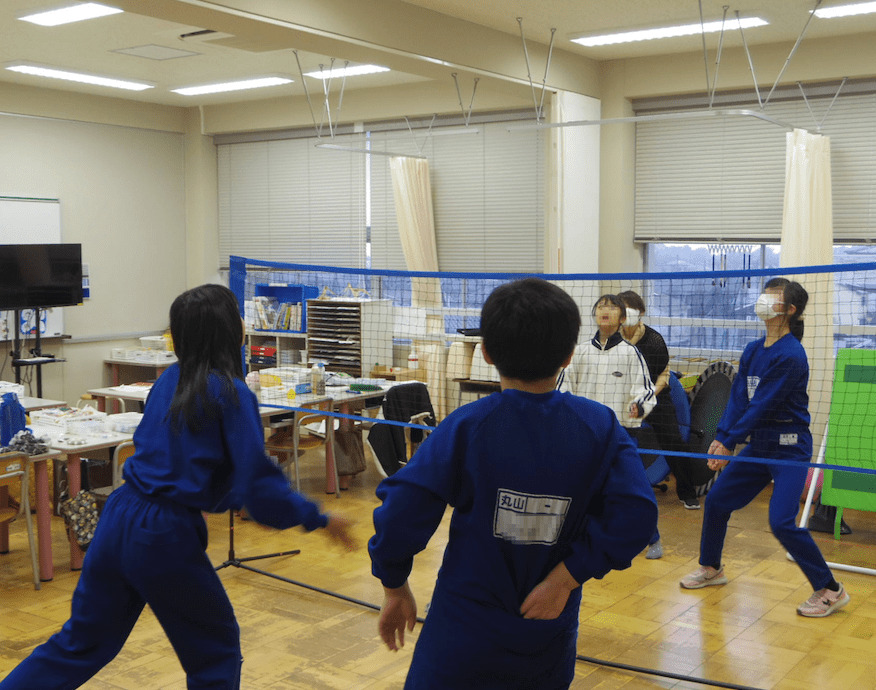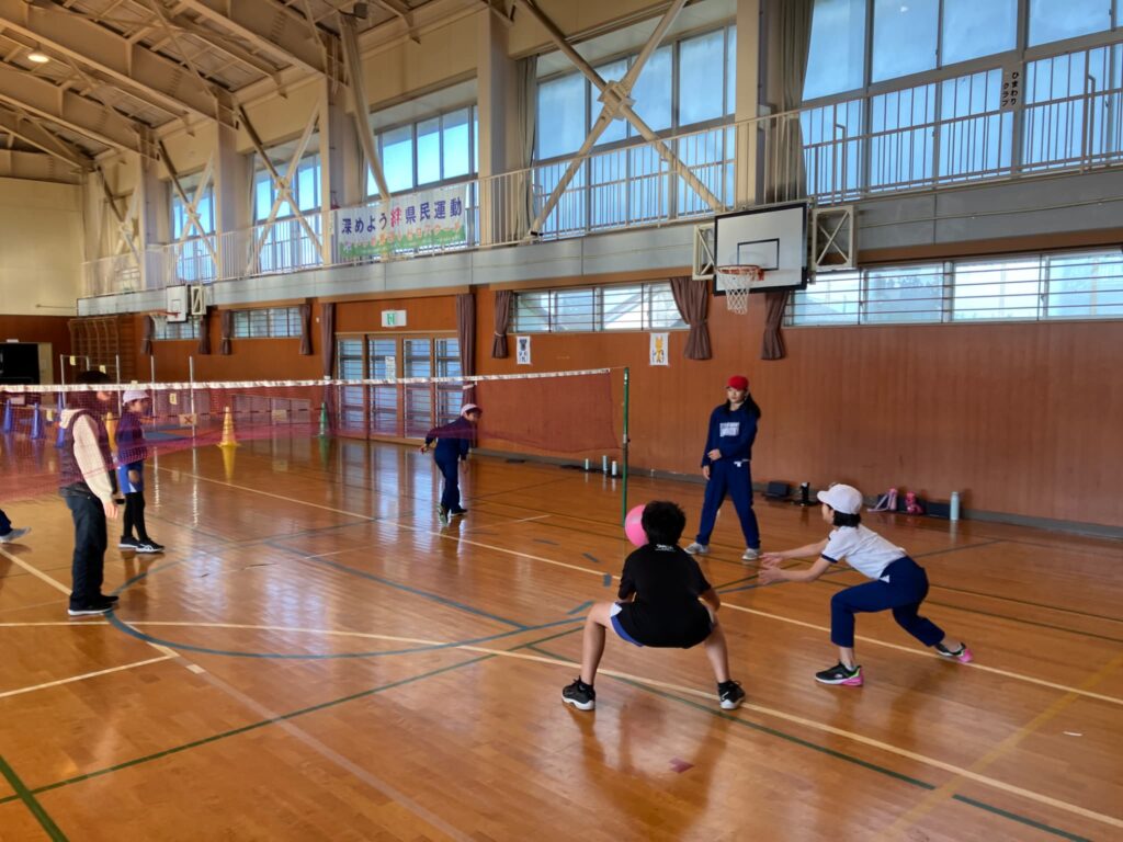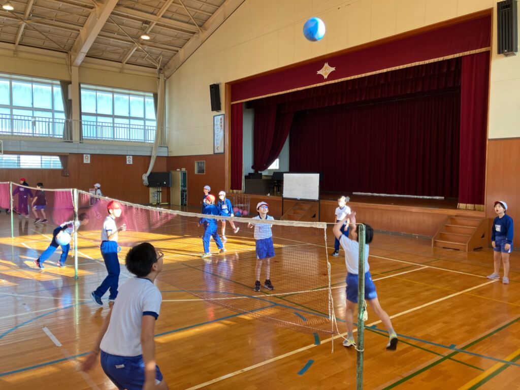 体育館以外でもミニバレーをしている教室がありました。楽しそう〜。でも周りに気をつけてねw