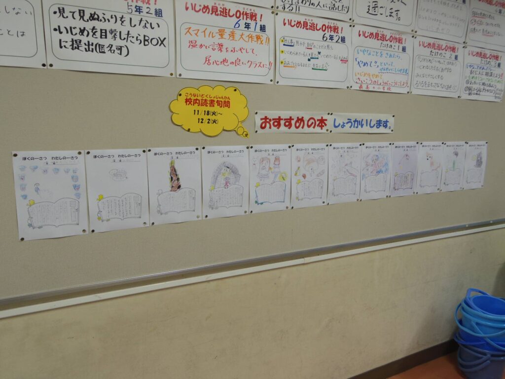 各学年の代表が書いた「おすすめの本」も玄関前に貼られています。