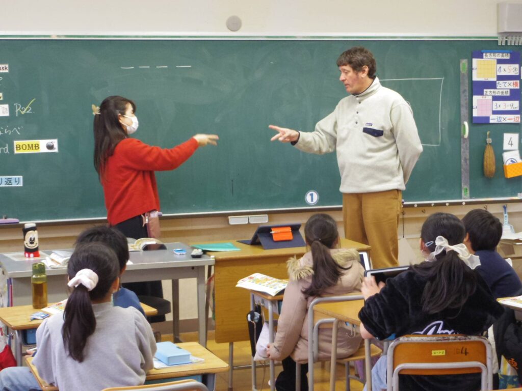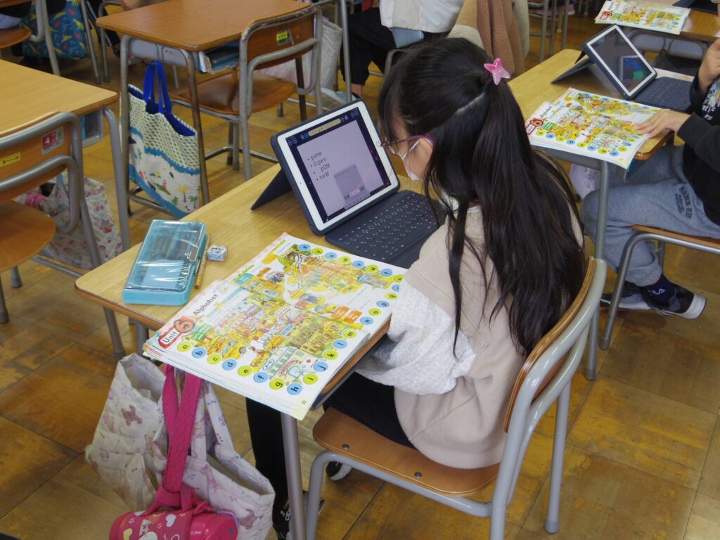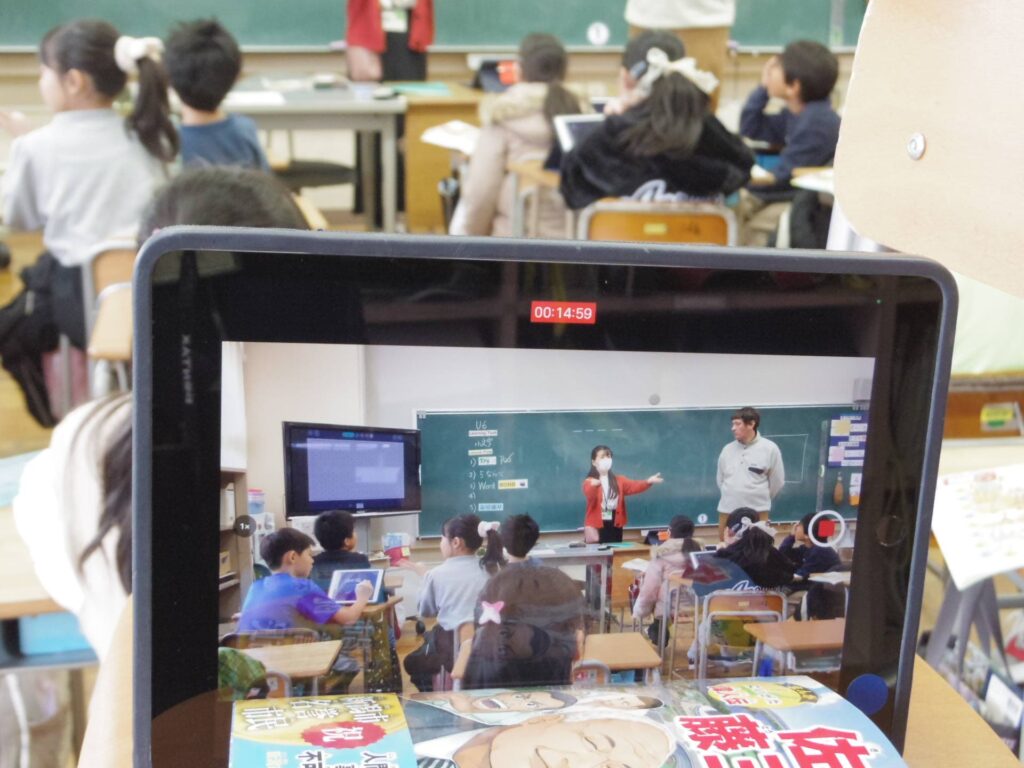 そんな中、週初めから子どもたちは授業に集中して取り組んでいました。まずは4年生英語の授業の様子です。アルファベットのおさらいをしていました。タブレットに書くところはイマドキって感じですよね。