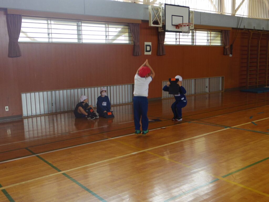 体育館では3年生が体育の表現運動です。テーマは「宇宙大冒険」です。スペーシーな音楽からイメージを膨らませ、それぞれの宇宙を動きで表現していました。いざ、ロケットで出発だっ!