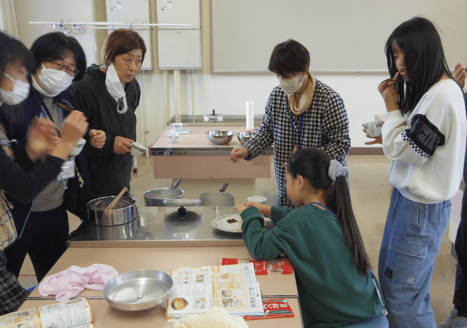 全く別の話に変わりますが、家庭科室で味噌汁づくりの調理実習をしていたクラスの様子を見に行ったら、もう会食後で「残念」と思っていたら、子どもたちはダシ取り後のコンブやカツオぶしをパクパク食べながら、「おいしい」「おいしい」と喜んでいました。フードロスへの意識があるかどうかは別として、私も子どもの頃、味噌汁のダシ用のニボシを楽しみに食べていた記憶がよみがえりました。(こちらもヘンテコな余談ですみません。)