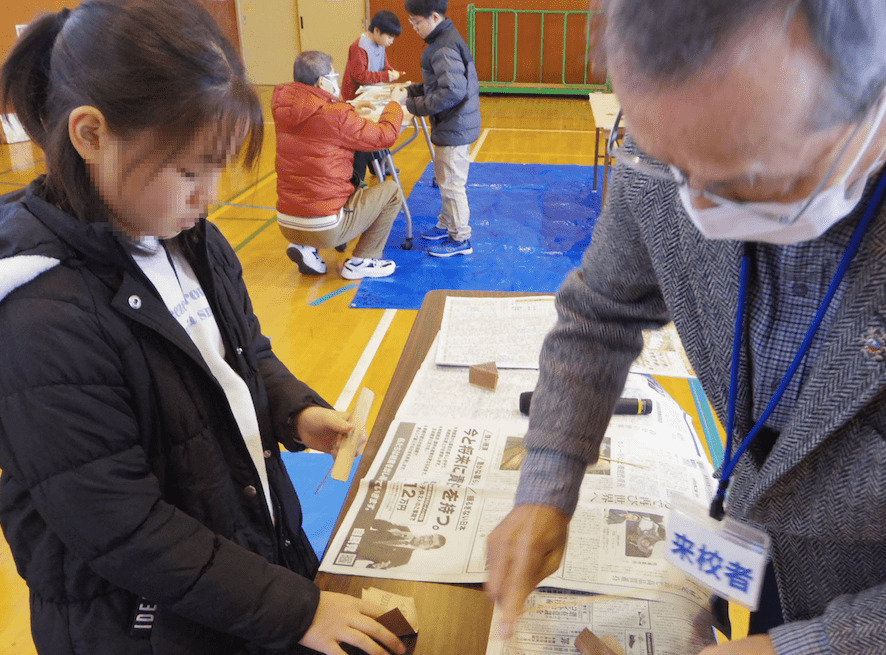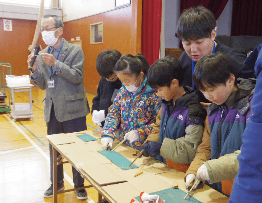 普段使い慣れない小刀を使って代表の子たちが切り出し作業を経験しました。