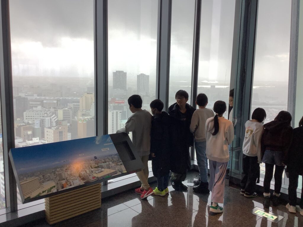 ビルの上から新潟市が一望できます。曇り空でしたが、よい眺めを楽しみました。おうちの人が作ってくれたおいしいお弁当をメディアシップで食べてから、次の見学施設へ向かいます。