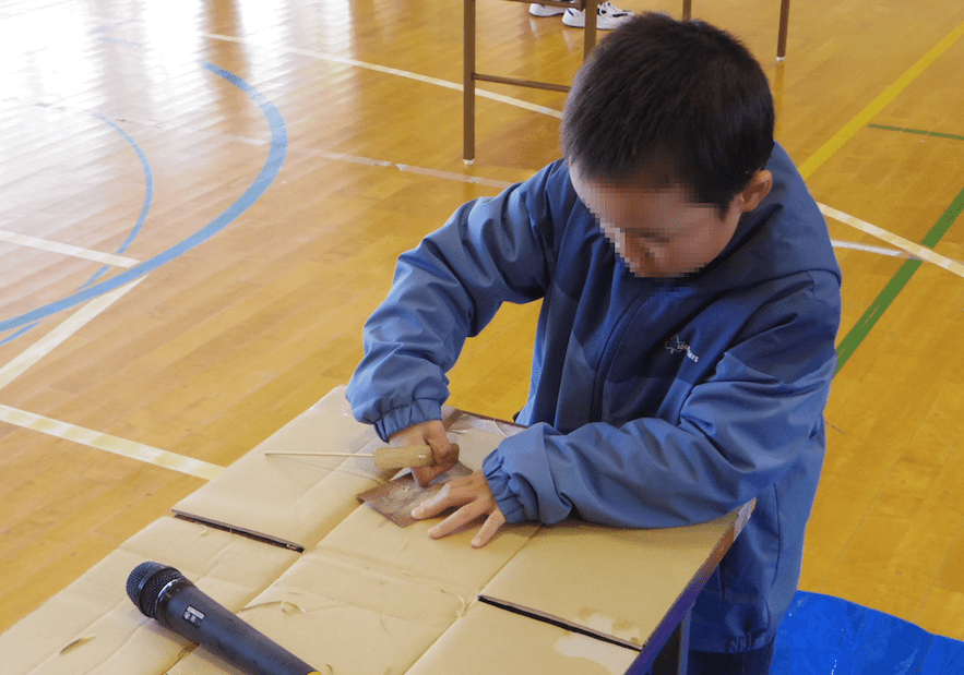 普段使い慣れない小刀を使って代表の子たちが切り出し作業を経験しました。