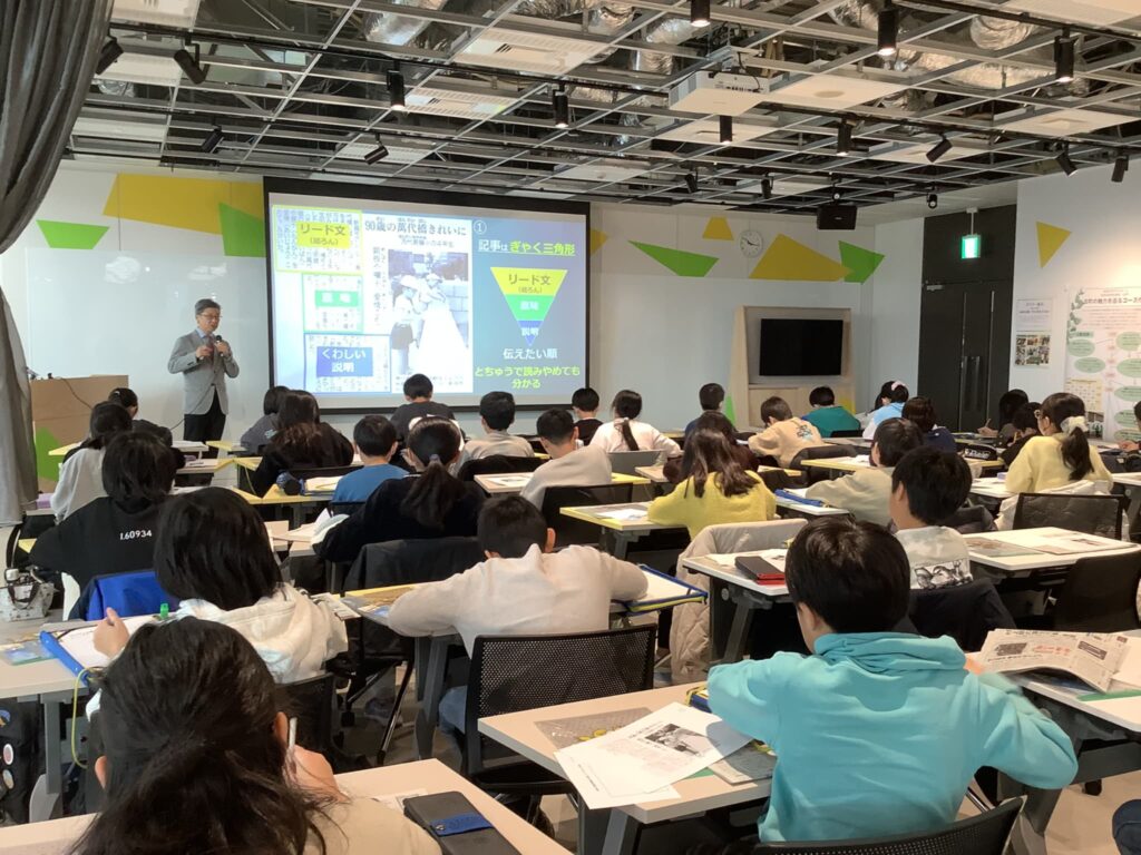 テレビのお仕事を学ぶためにNSTに到着です。ニュース番組がどうやって作られているのかについて話を聞いたり、実際の仕事の様子やスタジオを見たりするなど、たくさんの貴重な体験ができました。見学カードを何枚もおかわりするほど、気づきや発見をたくさんメモしていました。