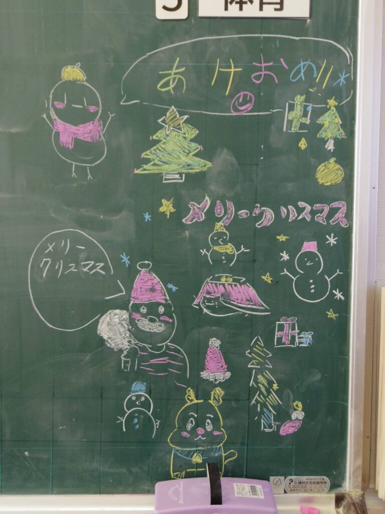 後期前半、毎日子どもたちと楽しい時間を過ごさせてもらいました。「来てくれてありがとう」という気持ちで毎朝子どもたちを迎えました。冬休み19日間、しばらく子どもたちと会えなくなって寂しいですが、また登校してきたら「学校が楽しい」と思ってもらえるように、私たちも冬休みにしっかりと休んで英気を養い、元気に子どもたちと再会できるようにしたいと思います。これまでのご理解とご支援をありがとうございました。